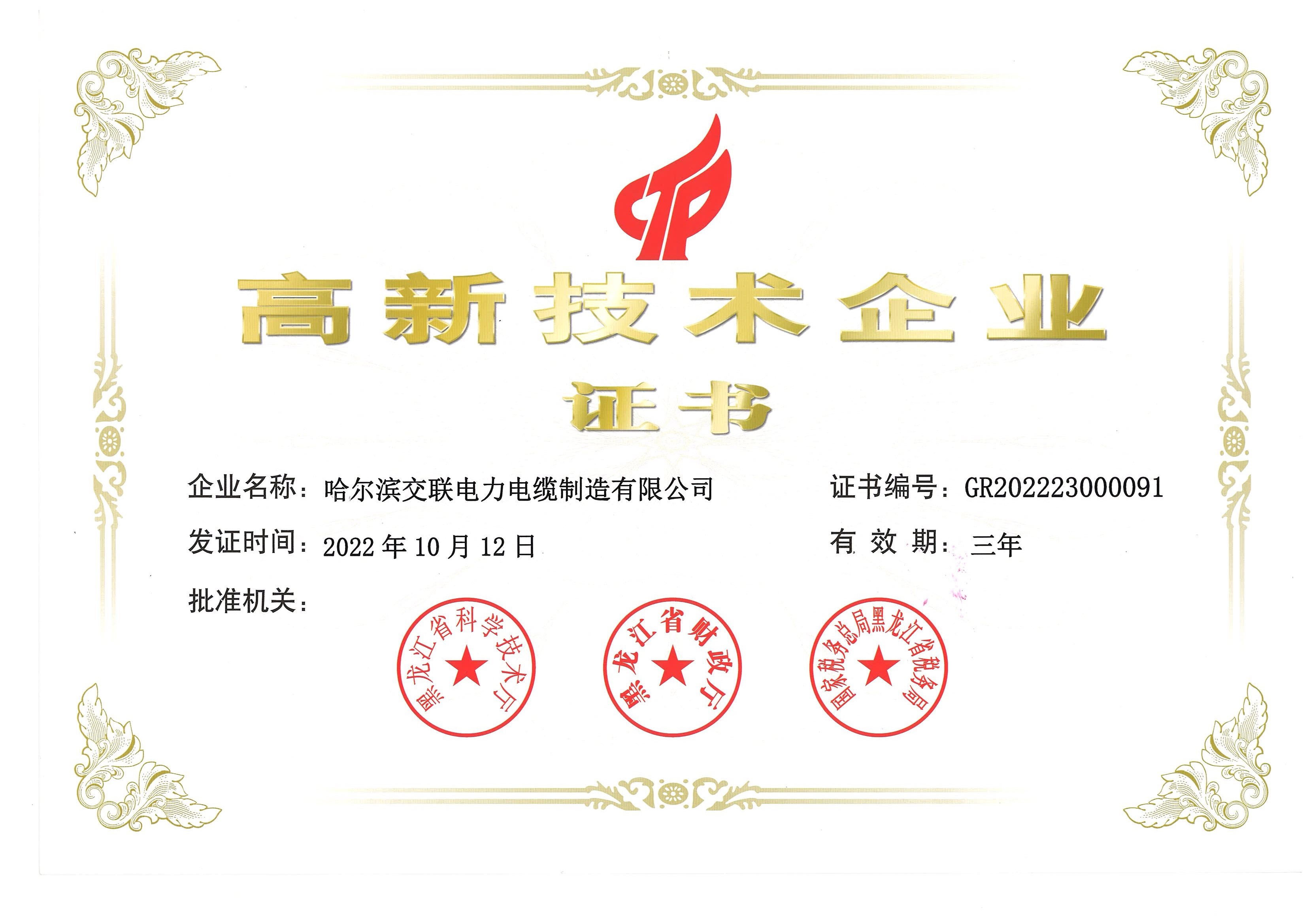 公司先后通过了ISO9001质量管理体系认证和CCC安全认证。多次荣获“中国电线电缆行业用户满意企业”“黑龙江名牌产品”“黑龙江质量诚信单位”“哈尔滨市名牌产品”“企业文化建设示范单位”“黑龙江省品牌价值评价15强”“企业信用评价AAA信用企业”“黑龙江省数字化(智能)示范车间”“高新技术企业”等荣誉。公司实行科学管理和全过程质量控制,以一流的服务赢得了良好的信誉和广阔的市场。曾为哈尔滨冰雪大世界、哈尔滨大剧院、黑龙江电力公司500kV前进变电站、浩良河变电站、哈尔滨太平国际机场、内蒙古伊敏电厂、中俄铁路大桥、吉林高速、中船重工、哈尔滨飞机制造有限公司、哈尔滨国际会展中心、卓展购物中心、华润、绿地、融创、中海、黑龙江铁塔、联通云数据中心、电信数据中心等重点工程项目提供了大量优质的电缆产品。并得到了广大用户的一致好评。